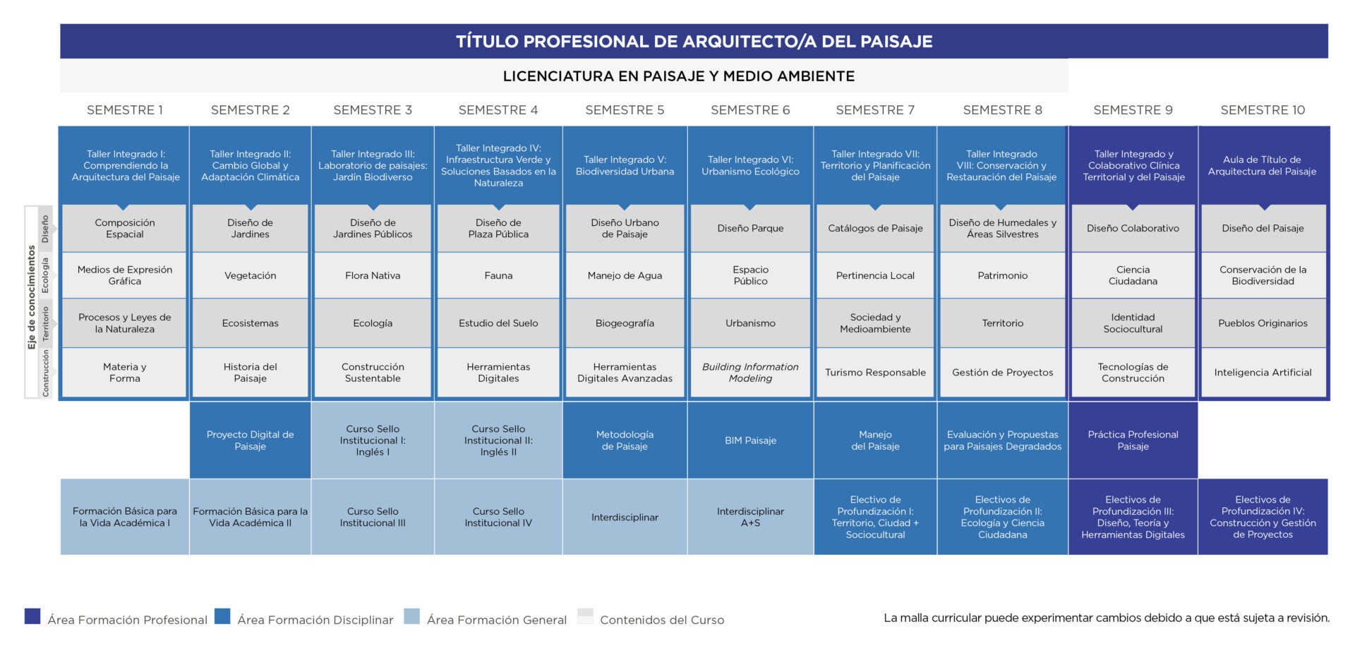 Formamos profesionales que conectan a las personas con la naturaleza, a través del diseño de espacios verdes privados y públicos como parques y plazas biodiversas, en ciudades, espacios rurales y naturales como humedales y bordes costeros, evaluando su impacto ambiental y en donde la comunidad pueda recrearse, hacer deporte y resguardar su patrimonio. Abordando el cambio global; la crisis climática, la emergencia de biodiversidad y la vulnerabilidad de las comunidades ante desastres naturales.
