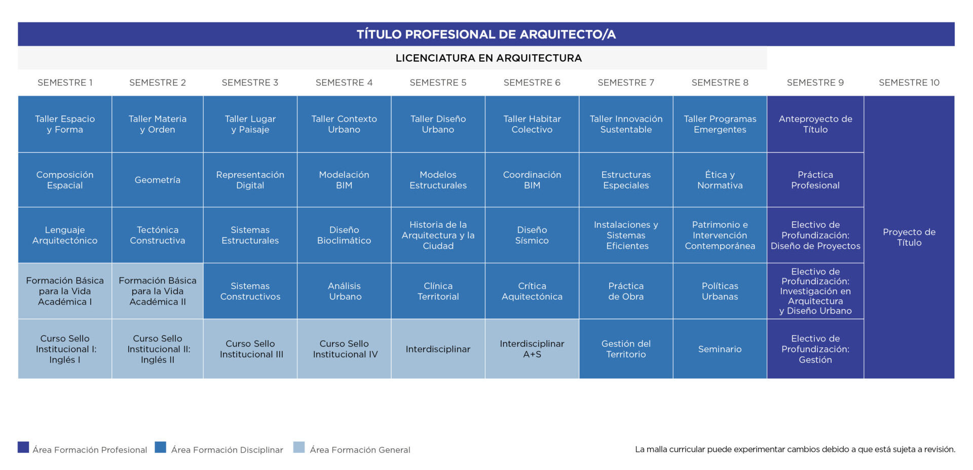 La carrera cuenta con una duración de 10 semestres y una acreditación internacional de la Royal Institute of British Architects (RIBA) desde 1992. Formamos profesionales comprometidos/as con el diseño y la construcción sustentable y en el bienestar comunitario.