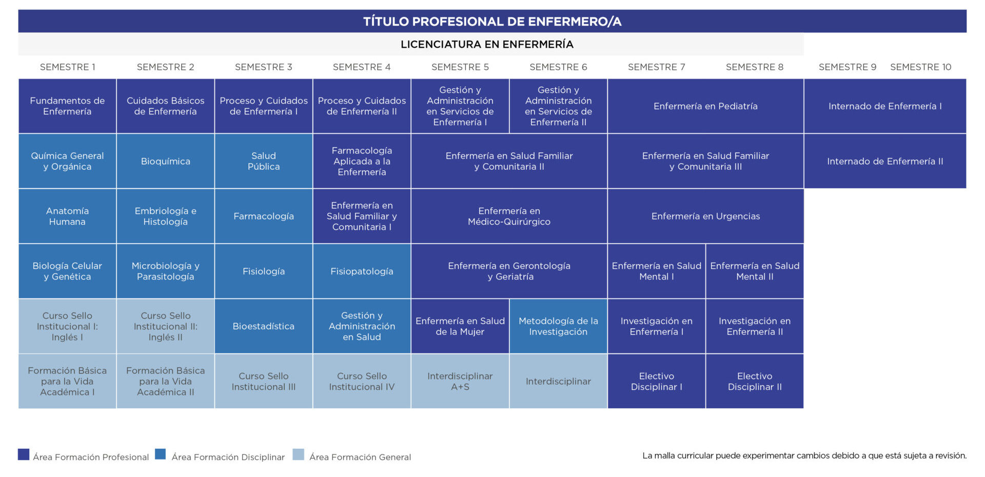 La carrera forma profesionales líderes en la Gestión del Cuidado para las personas y comunidades a lo largo de su curso de vida. El plan de estudios combina teoría y práctica, permitiendo que los/as estudiantes otorguen una atención humanizada y basada en la evidencia.