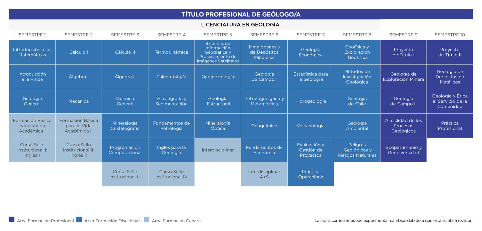 Con horas de docencia, laboratorios, salidas de terreno y uso de tecnologías, el plan de estudios está enfocado en la geología aplicada, geociencia, planificación territorial, gestión medioambiental y conservación del patrimonio geológico.