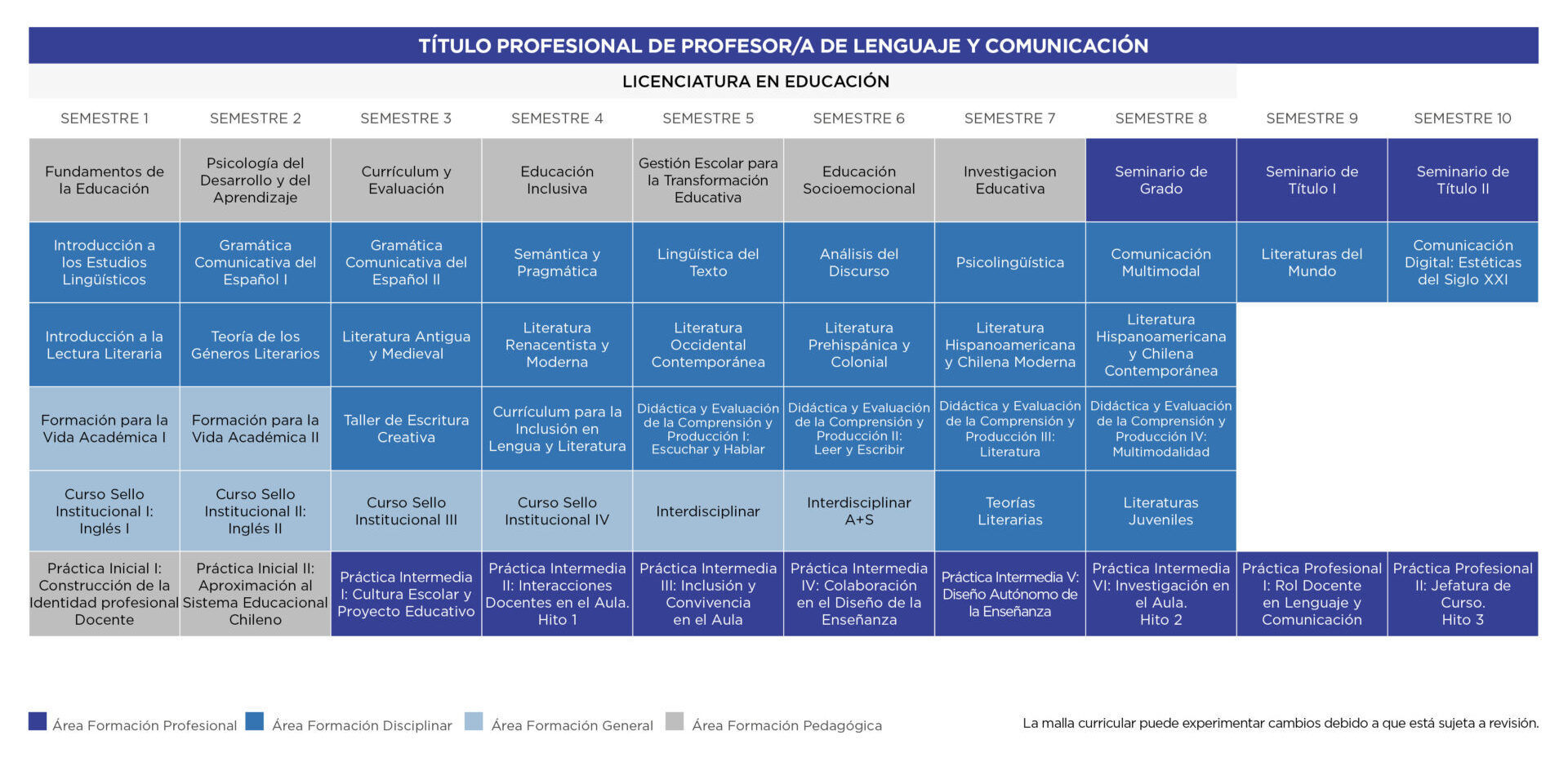 Malla Curricular Pedagogía en Lenguaje y Comunicación