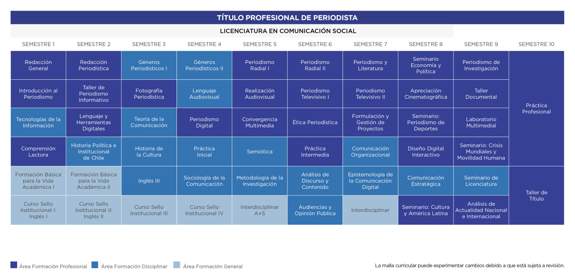 La carrera se destaca por la promoción de un profundo compromiso social, formando profesionales con respeto a los derechos humanos y poseedores de las competencias necesarias para cumplir su rol como comunicadores/as, desde una mirada ética, en una sociedad diversa y compleja. Para ello, existe un acompañamiento permanente y personalizado de los/las futuros/as periodistas.